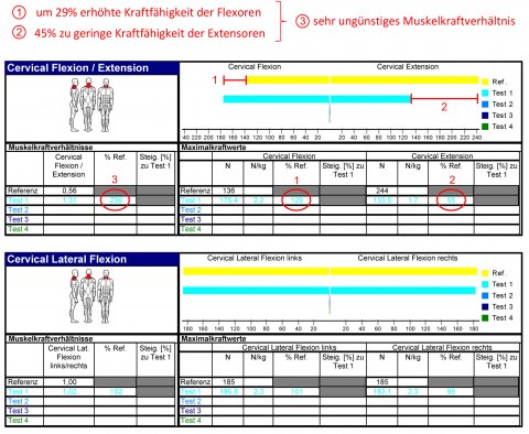 - Wie ist die Kraft Ihrer Nackenmuskeln im Vergleich zu einer Normgruppe?