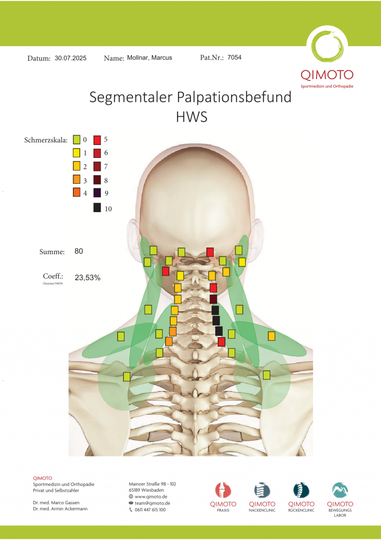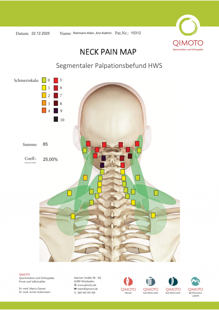 Sie ist ein von uns entwickeltes diagnostisches Verfahren, mit dem wir Nackenschmerzen systematisch, differenziert und nachvollziehbar erfassen – jenseits einer rein „druckschmerzhaften Stelle“.